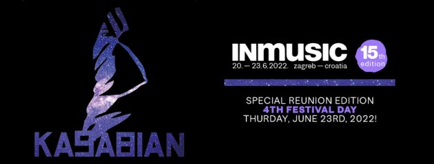 Kasabian se u sklopu dodatnog četvrtog dana INmusic festivala #15 pridružuju već potvrđenim nastupima The Killers, Nick Cave & The Bad Seeds, Deftones, Royal Blood, IDLES, White Lies, Fontaines D.C., Gogol Bordello, Amadou & Mariam, Hinds i dr. u sklopu odgođenog jubilarnog izdanja INmusic festivala #15 koje će se održati na dobro poznatoj lokaciji jarunskih otoka u Zagrebu od 20. do 23. lipnja 2022. godine. Četverodnevne festivalske ulaznice za INmusic festival #15 po cijeni od 599kn dostupne su putem službenog festivalskog webshopa, a već kupljene trodnevne ulaznice za INmusic festival #15 ostaju važeće i za puna četiri festivalska dana u novim datumima održavanja jubilarnog izdanja INmusic festivala. Višestruki posjetitelji INmusic festivala registrirani kao članovi INmusic cluba od 1. rujna 2021. imaju mogućnost ostvariti popuste na ulaznice za sebe i svoje prijatelje u iznosu do 100 kuna.
