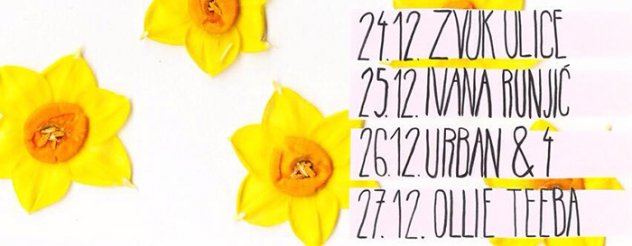 24.12. (srijeda) večer DJ rezidenta Zvuk ulice, 25.12. (četvrtak) Voodoo jukebox ft. Ivana Runjić, 26.12. (petak) Urban & 4, a 27.12. (subota) je rezerviran za Judin experiment i Ollie Teeba from HERBALISER.