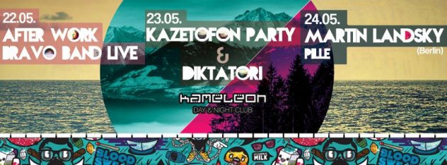 Plesna sezona u Kameleon klubu stigla je do samog kraja, večeras, u petak i subotu (22-24. svibnja) za ludi završetak, Kameleon je pripremio sjajnu trodnevnu zabavu. U četvrtak 22. svibnja posljednji After Work Party uveličat će sjajni Bravo Band s repertoarom nezaboravnih stranih i domaćih evergreenova, a za još bolju zabavu pomoći će im DJ Pinja. Ulaz je besplatan.