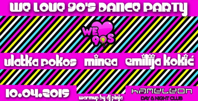 U petak 10.04.2015. u klubu Kameleon na redu je dugo očekivani proljetni „We love 90's“ party koji je od brojne publike prepoznat kao najotkačeniji i najluđi provod u gradu. Tri gracije dance scene 90-tih: Minea, Vlatka Pokos i Emilija Kokić će za Vas izvesti legendarne hitove poput: (Good Boy, Vrapci i komarci, Rano, Uberi ljubicu, Mimo zakona, Da me oće Stipe, Lasta lastavica, Metak, Ne tražim ništa, Na modrom nebu iznad Zagreba, Javi se, Ja sam Vlak, Rock me baby, Ti si najbolje, Ja sam bila s njim…).