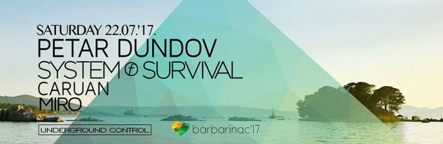 Nakon uspješnog otvaranja četvrte sezone glazbeni projekt Barbarinac ide dalje. Mali otočić u kaštelanskom zaljevu ovu subotu, 22. srpnja ugostit će legende Ibize - System Of Survival, pionira domaće techno scene - Petar Dundov i strastvenog Caruan s dvadeset godina DJ-inga iza sebe.