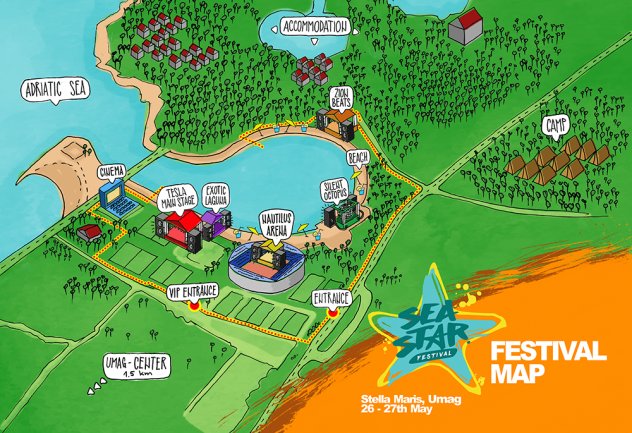 Poznata je i tzv. "2+2" matematika festivala, odnosno da će uz dva glavna dana, publika uživati i u warm-up tulumu 25. svibnja, dok je nedjelja, 28. rezervirana za after-party! Sea Star počinje s dnevnim programom već u podne i to partyjima oko šljunčane plaže u laguni, dok će noćni program upaliti sve pozornice i trajati do ranih jutarnjih sati. Mnoštvo potvrđenih artista bit će objavljeno već u prvoj polovici veljače, a do kraja mjeseca bit će poznat kompletan program. Uz eklektičan glazbeni set up posjetitelje će na festivalu dočekati i bogati FoodLand, ali i chill i activity zone, a uskoro će se predstaviti i inovativan cashless sistem plaćanja na festivalu.