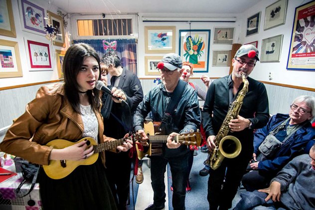 Druženje je započelo dolaskom klaunova doktora, poznatijih kao "Crveni nosovi" koji su odmah razveselili okupljene. Članovi udruge glazbenicima i organizatorima Porina pripremili su malo iznenađenje zapjevavši uz voditelja glazbene radionice Marija Bavčevića Oliverove hitove poput "Nadaline" i "Oprosti mi, pape", a potom su "padali" i dueti od kojih zastaje dah i pusti se suza radosnica.