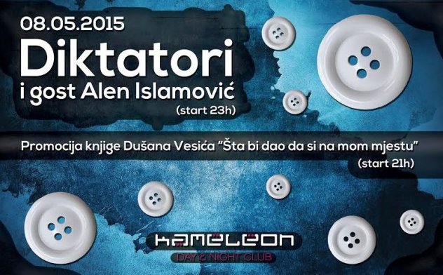 Nakon promocije s početkom u 23 sata kućnom bendu Diktatori uz njihov standardni repertoar ex-yu pop-rock hitova pridružiti će se i legendarni pjevač Bijelog dugmeta Alen Islamović. Zajedno će izvesti najpoznatije hitove Bijelog dugmeta, Divljih jagoda i Alenove solo karijere poput (Lipe cvatu, Napile se ulice, Tako ti je mala moja kad ljubi bosanac, Motori , Šejla, Hajdemo u planine, A i ti me iznevjeri, Bitanga i princeza i mnoge druge...).