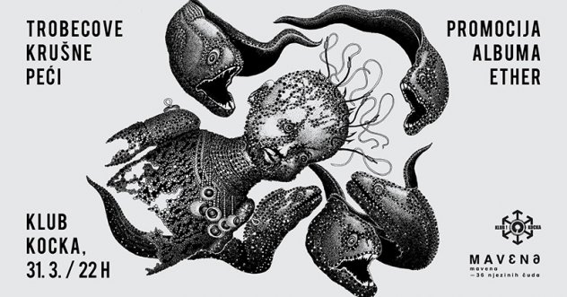 Trobecove krušne peći već desetljećima predstavljaju jedan od najvećih kultova ovdašnje alter-rock scene. Novim albumom 'Ether', snimljenim upravo prilikom njihovog posljednjeg nastupa u Kocki 30.01.2015., o kojem se u Splitu još priča, nastalog uz pomoć snimke Marka Perčića Sule i mixa i masteringa Hrvoja Pelicarića, dokazali su da i nakon svih tih godina na sceni još uvijek spadaju među najoriginalnije i najuzbudljivije bendove koje smo ikada imali. Splitsku promociju ovog vrhunskog albuma imati će a gdje drugdje nego u Kocki, uz izložbu grafika kojima je i sam album opremljen, autora svestranog Ivana Vinskog, ujedno i gitarista benda.