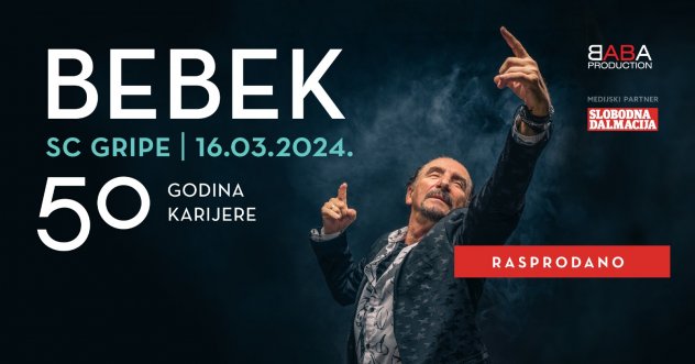 Željko Bebek je rasprodao puni kapacitet dvorane Gripe, gdje će sa splitskom publikom ove subote 16. ožujka proslaviti velikih 50 godina karijere. “Neizmjerno vam hvala! Jedva čekamo da stanemo pred vas i priredimo rock koncert za pamćenje” poručuje.