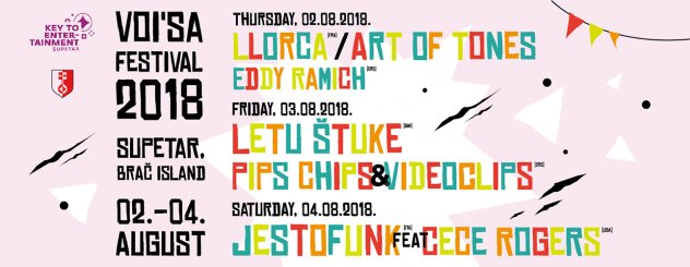Voi’Sa iz godine u godinu zauzima sve bitnije mjesto na mapi događanja hrvatske obale, a imena kao što su Ludovic Llorca aka Art of Tones, Jestofunk feat. Cece Rogers, Eddy Ramich, Jan Kinčl & Regis Kattie live act, Pips, Chips & Videoclips i Letu Štuke više su nego dovoljan razlog da uhvatite jednu od 12 trajektnih linija koje svakodnevno povezuju Split i Supetar i priključite se najplesnijem izdanju festivala do sada.