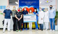 Kristijan Sindik bolnici uručio sredstva prikupljena u projektu Zlatna vrpca - 7 maratona u 7 dana.